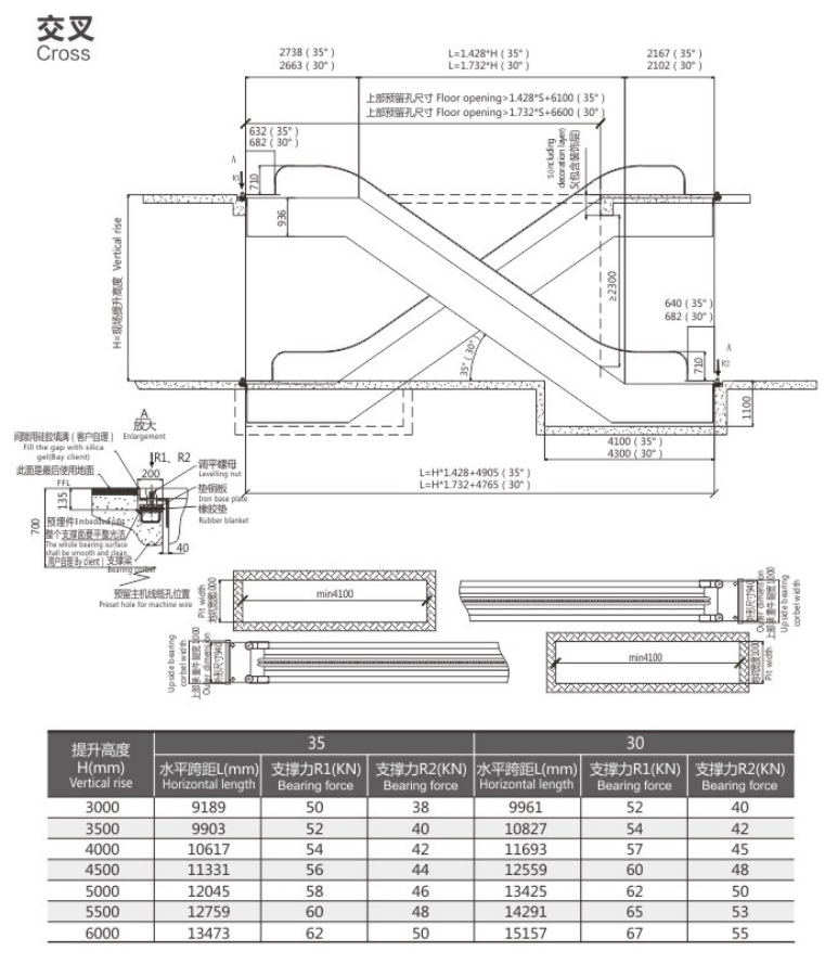 下圖為中海三菱電梯交叉布置安裝的購物車電梯土建示意圖,如有疑問可查看www.lwfpbyz.cn更多內容或直接致電我們的技術顧問:13616720921