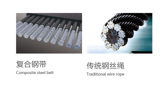 中海三菱別墅電梯鋼帶表面采用表面聚氨酯層,減少傳統鋼絲繩與主機(金屬)之間的摩擦。有效降低運行中的震動和周邊環境噪音。為客戶創造更舒適更安靜的移動空間。