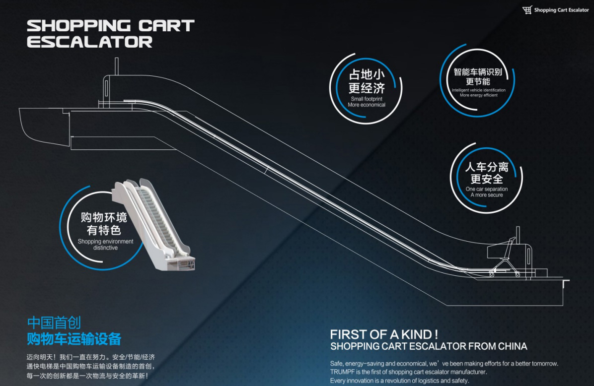 全球商超訂制產品-中海三菱購物車電梯,購物車運輸設備